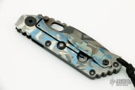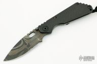This SNG CC Starlingear edition by Strider Knives features a spear point laser etched blade with notched thumbrest and thumbhole. The handle has a carbon fiber and laser etched titanium frame with matching tip up clip. Nice detent, lockup and blade seating. Comes with an Everett leather sheath. Excellent condition.