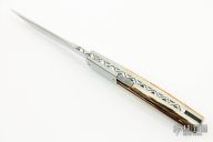 W.D. Pease has been a full-time custom knife maker since 1978 after joining the Knife Makers Guild in 1976. Since 1969, W.D. has been creating these unique masterpieces but has been drawn almost exclusively to folders due to the challenge in making them and for their demand. From stainless steel and Damascus blades to beautiful pearl, stag and bighorn sheep handles, his knifes are among the finest around.