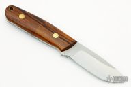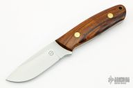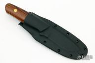 This KS-1 Master Skinner by Dozier Knives features a satin finished blade with .158" blade stock and 1.105" blade depth, full tang construction. The handle has Desert Ironwood scales with brass pins and lanyard hole. Comes with kydex sheath with belt clip. Has a couple light scuffs, otherwise excellent condition.