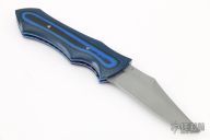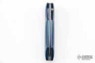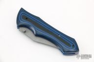 This left handed scale release is #4 of 30. Features a bead blasted blade with single thumbstud, black/blue G-10 scales, anodized titanium liners and a bead blasted stainless steel backspacer. Nice detent, lockup and blade seating. Excellent condition.