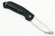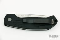 The Magic is a scale release automatic knife designed by Mike "Whiskers" Allen. Very covert automatic mechanism with no push-button. The handles pivot at the back to fire and unlock the blade. When holding the knife in the right hand, the top handle scale must slide forward (away from your palm), and the bottom must slide in toward your palm. Wrap your middle finger around the bottom scale and pocket clip for better grip on the knife. All it takes is the right squeeze of the back end of the handle scales and like magic the knife opens with fantastic automatic action. The same action or squeeze of the handles releases the blade from the locked open position. Has a stonewashed blade and black aluminum handle with a tip up stainless steel clip. First production run #685. Excellent condition.