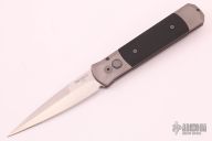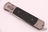 This Godfather from Pro-Tech knives features a satin finish spear point blade with swedge. The handle has a special gray aluminum frame with black G-10 scales, stainless steel tip up pocket clip. Great blade seating, action and lock up. Excellent condition.