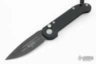 This LUDT side opening automatic by Microtech has a black finished blade with a standard edge and a contoured black aluminum frame. Stainless steel clip. Dated 07/2018 and serial number 09039. Comes with original box and papers. Excellent condition.