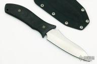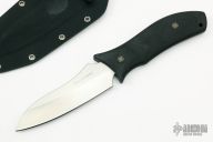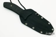 This knife by Neil Blackwood features a hand rub satin finished blade with a hidden/mortise tang construction, .164" Blade Stock, 1.385" Blade Depth. The handle has a black G-10 grip with mosaic pins. Comes with a kydex sheath. Excellent Condition.