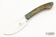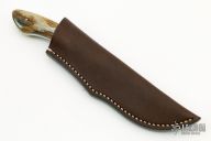 This "Sable" by Arno Bernard is part of the "PH Series" series of knives. This piece has giraffe bone handle scales. Mirror polish tumble finished N690 blade with .118" blade stock and 1.097" blade depth, full tang construction. Includes a brown leather sheath. Comes with original box and COA. Excellent condition.