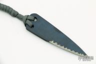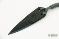 This ThumbTAC by Warren Thomas features a blue anodized chisel ground titanium blade with carbon fiber laminate and a carbidized edge. 0.174" blade stock and .918" blade depth. Includes kydex sheath. Excellent condition.