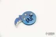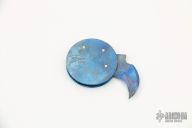 This coin knife by Warren Thomas features a chisel ground titanium blade with a carbide edge, and a 1 3/8" diameter titanium frame. Both are finger print anodized. Excellent condition.