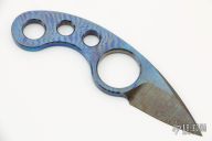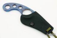 This La Griffe is "Fingerprint" anodized titanium with a chisel ground blade with a carbide edge, .210" thickness and 1" blade depth, 1" diameter finger hole. Nice fit in the hand. Excellent condition. Comes with kydex neck sheath.