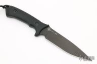 This Harsey - Difensa by Spartan Blades features a gray coated spear point blade with swedge. The handle is comprised of 3D contoured g10 scales over full tang construction. Exposed tang pommel with lanyard hole. Includes black kydex sheath with nylon belt attachment, and original box and papers. Excellent condition.
