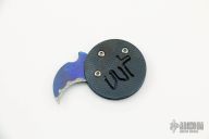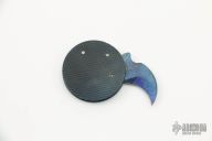 This coin knife by Warren Thomas features a chisel ground titanium blade with a carbide edge, and a 1 3/8" diameter knurled titanium frame. The blade is finger print anodized. Excellent condition.