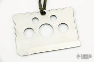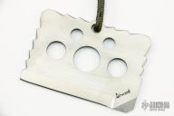 Handmade using S30V stainless steel by Peter Atwood, the Atwood Credit Card Knife is made to the same standards as all of Peter's PryBaby Tools. Measuring 3" x 2 1/8" x 1/8" and weighing only 2.2 oz, this is a very practical backup tool. The one sharpened edge measures approximately 2.25". In addition to Peter's design intent that it be a daily carry addition to one's wallet, I see it as perfect for tool boxes, tackle boxes, glove boxes, backpacks, golf bag pockets etc. Skeletonized with nylon lanyard. Satin Finish. Excellent condition. RARE. Comes with card.