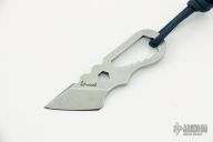 Made of Crucible's CPM S30V cutlery steel this tiny keyring tool knife features a 1.375" cutting edge, a 1/4" hex opening and six Imperial wrench sizes in the handle ranging from 1/4" - 5/8". Tumble finish. Chisel grind. Excellent condition. Comes with original bag, sheath and card.