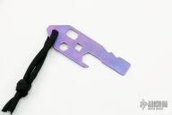 "Features include small pry tool end, screwdriver tip, and bottle opener. Special flat titanium GasBaby features 7/16" wrench, 1/4" hex drive, oxygen bottle wrench for EMTs, and small acetylene B-tank wrench." Gasbaby has a bead blasted finish. Titanium.  Excellent condition. Comes with original bag and card.