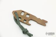 "Features include pry tool with nail puller/wire stripper notch, screwdriver, and bottle opener. Special GasBaby version features 3/8" wrench, 1/4" hex drive, oxygen bottle wrench for EMTs, and small acetylene bottle wrench."  Includes COA and Kydex sheath. Anodized titanium. Excellent Condition.