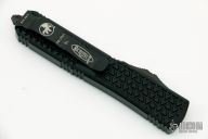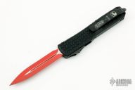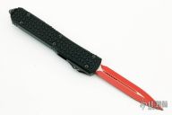 This Ultratech OTF automatic by Microtech features a D/E red blade. Black aluminum contoured frame with black tip down stainless steel clip. Dated 09/2021 and s/n 5677. Excellent condition. Includes original box and papers.