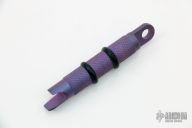 "The Atwood BrewDriver and Mini BrewDriver tools are turned and milled from solid bars of titanium. Featuring a simple bottle opener and standard sized 1/4" flat head screwdriver on a grippy knurled shaft, these little tools make a perfect key fob." Blue anodized. Excellent condition. Comes with original bag and card.