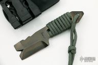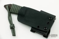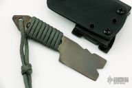 This Micro Bug Out Blade has a DLC tumble finish, V-notch, and cord wrap. Excellent condition. Comes with Kydex sheath with Tek Lok, and original bag and card.
