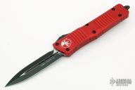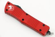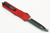 This Troodon OTF automatic features a double edged black blade with a standard edge. The handle is composed of red aluminum with a stainless steel clip. Glass breaker. Includes original box and papers. S/N #35480 and dated 10/2021. Excellent Condition.