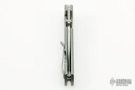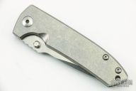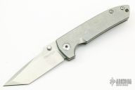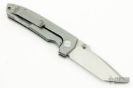 This midtech VECP tanto framelock folder from Les George features a tumble finished, CNC flat ground blade and a bead blasted titanium frame with a matching clip that is positioned for tip up carry. Hinderer lock bar stabilizer. Phosphorus bronze washers. Smooth action. Great blade seating and lockup. Comes in a padded/zippered case. Excellent condition.