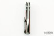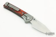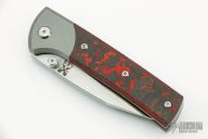 This Chaves Scapegoat features a satin finished drop point blade with the Chaves logo and dual thumbstuds. The handle has a stonewashed titanium frame, with fat carbon scales and a matching skull pocket clip. Includes an interchangeable titanium clip. Comes with original box. Excellent condition.