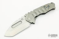 The Praetorian is a Marquee knife. It is a TON of blade in a relatively small package. This design incorporates aerospace materials, space age coatings, old school metallurgy, thoughtful design and hand craftsmanship that is rare but alive and strong in this modern world. This knife features a tumble finished drop point tanto blade. This particular knife features slender titanium scales, all titanium hardware, and satin titanium clip. Dead center blade seating. Comes with hard case and original box. Excellent condition.