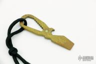 "Made of 6AL4V Titanium, this compact multi wrench tool features seven SAE wrench sizes: 1/4", 5/16", 3/8", 7/16", 1/2", 9/16", and 5/8". Also features a bottle opener with additional 5/16" wrench opening and a heavy duty pry tip." Excellent condition. This one has a glow dot. Comes with original bag and card.