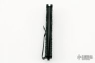 This TR-5 automatic model has a black anodized aluminum handle with a two-tone black back spacer/lanyard attachment, and a deep carry tip-up pocket clip. Its blade is made from CPM-S35VN stainless steel in a black finish. A sliding safety lock allows secure pocket carry and prevents accidental blade deployment.