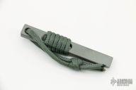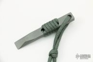 Constructed of CPM 3V steel. The Atwood Wedgie is a pocket prytool for prying/wedging but also with user defensive capabilities. Drilled holes allow for cord wrap, finger loop lanyards and/or keychain attachments. Paracord and lanyard. Tiger stripe finish. Comes with original bag and card.