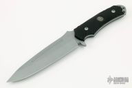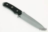 This Hide Fighter by Steve Woods and Wilson Combat features a bead blasted blade with a fuller on one side, .200" black stock and 1.606" blade depth, full tang construction. The handle has black G-10 scales. Comes with a Spec-Ops Sheath. New from maker!