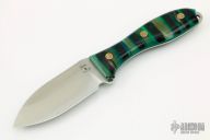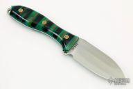 This Crab Shack Custom by Busse Custom Shop features a satin finished blade with .090" blade stock and 1.299" blade depth, full tang construction. The handle has multi-piece scales with black and green liners and mosaic pins. New from maker.