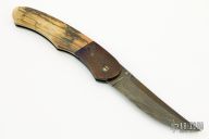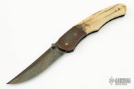 Rick first started making knives in 1984, and after moving to Montana in 1985, his interest in the craft increased. He made stainless steel hunters and utility knives until 1991, when he began forging carbon steel knives and creating damascus steel. Rick joined the American Bladesmith Society in 1992. Since receiving his jouneyman smith rating in 1995, Rick’s main focus has been damascus steel, particularly mosaic and composite bar blades. Rick attained the American Bladesmith Society Mastersmith rating in 1997, and in 2002 was selected to the Board of Directors of that organization. He has been a full-time knifemaker since 1996, except for the two month’s each fall that he operates as an outfitter in Montana’s Scapegoat Wilderness. Rick now specializes in damascus folding knives, and also enjoys making Bowie or Persian style straight knives. Rick has earned many awards for his one-of-a-kind creations.