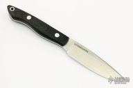 This Kalahari Thorn by Bark River Knives features a satin finished blade with .123" blade stock and .912" blade depth, full tang construction. The handle has black canvas micarta scales with lanyard hole. Comes with brown leather sheath and original box. Has a couple light scuffs, otherwise excellent condition.