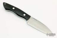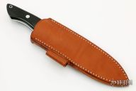This Bush Seax by Bark River features a satin finished drop point blade, .188" blade stock and 1.456" blade depth, full tang construction. The handle has black canvas scales stainless pins, lanyard hole at the butt. Comes with brown leather sheath and original box. 1st Production Run. Has a couple light scuffs, otherwise condition.