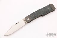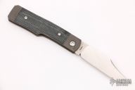 This Sharpshooter Jack is a gunstock slipjoint model by Jack Wolf Knives featuring a satin finished clip point blade with nailnick. The handle has integral bead blast finish pinched and fluted titanium front and rear bolsters and liners, black micarta scales with a stainless spring. Comes with box, metallic tube with Sean Tiffany artwork, leather slip, sticker and microfiber cleaning cloth. New from Maker.