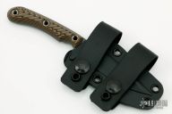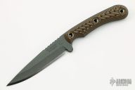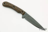 The sparrow is a compact bird and trout style fixed blade that excels in a concealed carry or everyday carry role for your go-to knife needs. It’s a knife that you can pull out in the park to cut your apple without anyone being concerned that you have a knife. It blends in well in both urban and rural settings and is a great companion for any adventure. The classic drop point blade has a tungsten Cerakote finish for corrosion and glare resistance. The beveled and contoured G10 grips features diagonal texturing for a not too aggressive but secure grip. Comes with molded kydex scabbard with pull the dot snap loops ready for horizontal and vertical carry. Excellent condition. Comes with original box and COA dated 2019.