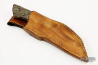 This knife by Stephan Fowler features a hand rub satin finished blade with hammer marked flats, .249" blade stock and 1.451" blade depth, full tapered tang construction. The handle has brown canvas micarta scales with red liners. Excellent condition. Comes with a brown leather sheath.