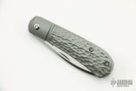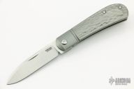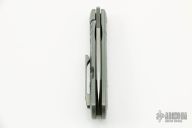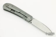 This Trapper Front Flipper by Enrique Pena features a satin finished blade with a front flipper and notched thumbrest. The handle is composed of jigged titanium with a matching backspacer and tip up pocket clip. Includes a Pena X-Series padded box. Has a couple light scratches, otherwise Excellent Condition.