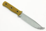 This Bounty Hunter by Ben Tendick features a tumbled clip point blade .184" blade stock and 1.164" blade depth, full tang construction. The handle has sculpted G10 scales. Comes with a kydex sheath and COA. New from Maker.