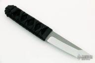This Micro Oregonto from Ben Tendick of B.R.T. Bladeworks features a tumbled tanto style blade with swedge. The handle has a Tsuka Ito wrapped grip over an epoxy soaked hemp cord under wrap. Includes a kydex sheath and COA. New from maker!