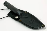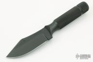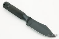 This Ubejane Skinner from Chris Reeve features a non reflective black finish with a clip point A2 blade with a false top edge and notched thumbrest, .200" blade stock and 1.737" blade depth, integral construction. The handle is knurled for a solid grip and has a removable butt cap with lanyard, has butt cap and storage area inside the handle. Comes with a black leather sheath, custom kydex sheath, original box and papers dated April 4, 2006. Excellent condition.