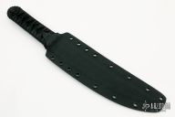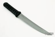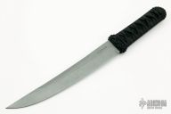 This Unokubi Zukuri Tanto from Ben Tendick of B.R.T. Bladeworks features a tumbled upswept blade with swedges. .194" Blade stock 1.244" Blade Depth. The handle has a Turk's head bolsters and epoxy soaked tsuka wrap over hemp cord underwrap. Includes kydex sheath and a C.O.A. Brand New from Maker.