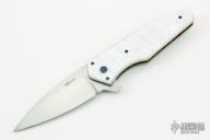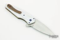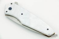 This Viper by J.E. Roorda features a hand rubbed satin finish blade with a flipper, krinite pearl scales over anodized titanium liners, and anodized titanium clip. Rides on bearings, nice lockup, detent and blade seating. Includes card from maker and padded hard case. Brand new from maker.