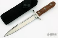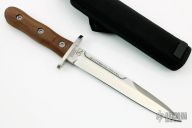 The result of a project sponsored by COFS (the inter-force operations command for Italian special forces) and its former Commander-in-chief, Gen. Bertolini – not to mention advocated for by knife collectors worldwide – this combat knife 39-09 is a restyling of the Model 1939 “paracadutista assaltatore” (assault paratrooper) knife, a celebrated piece of Italian military history. While preserving the original shape, structure and proportions, we managed to reinforce, add increased functionality and manufacture this combat knife to contemporary military specifications from up-to-date materials. Small changes which make it a highly effective, dependable dagger. The included hard sheath is designed to be worn at the ankle, in the characteristic fashion of Italian paratroopers. The 39-09 SPECIAL EDITION version, numbered, unlimited edition, has wooden grip, satin-finish blade and details and COFS logo & motto. It comes in parade belt sheath.