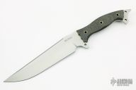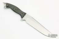 This Urgent Fury by Busse features a satin finished drop point blade, .214" blade stock and 1.820" blade depth, full tang construction. The handle has black canvas micarta scales, extended tang with lanyard hole. Excellent condition.