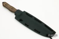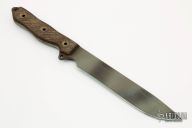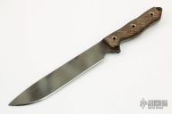 This DSF Terror Monkey by Busse Knives features a camo coated blade with .230" blade stock and 1.954" blade depth, full tang construction. The handle has natural canvas micarta scales, lanyard hole at the butt. Comes with a custom kydex sheath. Has a few light scuffs, otherwise excellent condition.