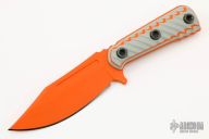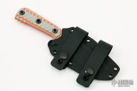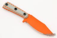 The UCAP is a mid-sized fixed blade that is geared for everyday carry. The knife was created with a defensive purpose in mind, but is also well equipped for any and all cutting chores where a knife is called for, from first responder situations, outdoors activities, and just about anything else you can throw at it. It's a looker too, look at those classic lines and that belly! The UCAP has a bowie-style clip point blade made from S45VN steel. The knife features a 4" blade that has a tungsten cerakote finish for corrosion resistance and durability. Weighing in at 5.2 oz, the knife is deceptively light, yet can hold its own in both categories of everyday carry as well as heavy use tactical knife. Offering a full tang and tubed rivet handle construction, this is one tough little knife! The beveled and contoured G10 grips feature a diagonal texturing that offers a very secure grip without being overly aggressive and they work very well wet or dry. New from maker. Comes with original box, papers, sheath, and original scales. Excellent condition.