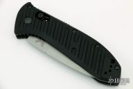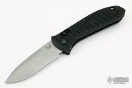 This automatic Presidio II model sports a black aluminum handle and a black finished blade. Benchmade has updated their legendary Presidio model with significant ergonomic and performance upgrades. This combat legend has a black anodized 6061-T4 billet aluminum handle with Benchmade's AXIS lock system for effortless one-handed opening and closing. Milled grooves in the handle improve grip while adding a modern flair to the design. The Presidio II has a slightly larger blade and handle that is built to perform well as a tactical or everyday carry knife. Item includes a Cordura sheath with snap retention and a Malice Clip. 6061-T6 billet aluminum handle offers a tough build without weighing you down. Dual thumb studs, reversible pocket clip, and an AXIS® lock mechanism provide a fully ambidextrous design. Blade is made from CPM-S30V steel for maximized strength and cutting performance. Comes with original box, sheath and papers. Excellent condition.