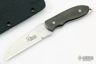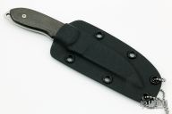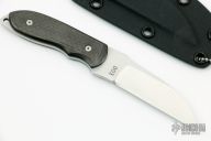 This Neck Knife by Flavio Ikoma features a satin finished blade with notched thumbrest, .127" blade stock and .876" blade depth, full tang construction. The handle has carbon fiber scales and a lanyard hole at the butt. Comes with a kydex sheath with ball chain. Has a few very light scratches, otherwise excellent condition.