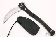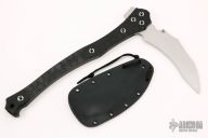 This SICKles by American Kami features a satin finished chisel multi-ground blade with .216" blade stock and 2.200" blade depth, mortise/hidden tang construction with sculpted, black G-10 handles. D.J. claimed that the grinds on these pieces were very challenging and that he wouldn't do any more. Come in black kydex sheath. Excellent condition.