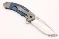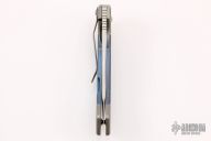 This Pro Series Lahar framelock flipper by Tim Galyean features a hand-ground satin finish blade and a milled and anodized titanium frame. Bead blast titanium tip down clip. Notched thumbrest. Includes IKBS (Ikoma-Korth Bearing System) for smooth and fast flipper opening that requires no wrist action. Perfect blade seating, detent, and lockup. Excellent work. Numbered 043 on back of blade. Excellent condition. Comes with a velcro case.